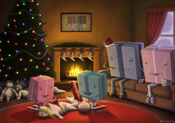 Inverted Christmas where Gifts are opening Kids… (and 12 other Illustrations by Rob Sheridan): " Watch all the Illustrations by Rob Sheridan hereWatch all the Illustrations by Rob Sheridan here